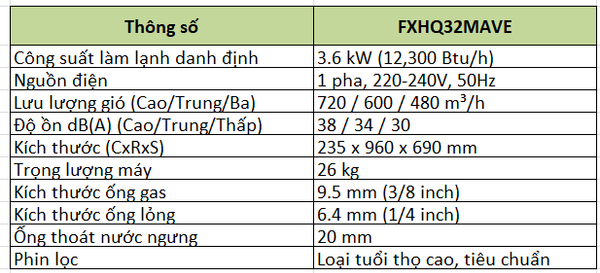DÀN LẠNH ÁP TRẦN VRV FXHQ32MAVE – ĐIỀU HÒA TRUNG TÂM