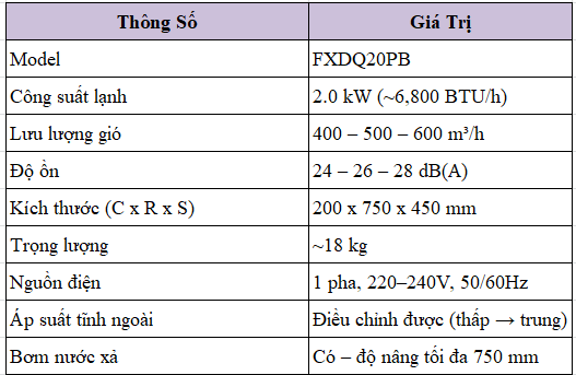 📊 THÔNG SỐ KỸ THUẬT – FXDQ20PB