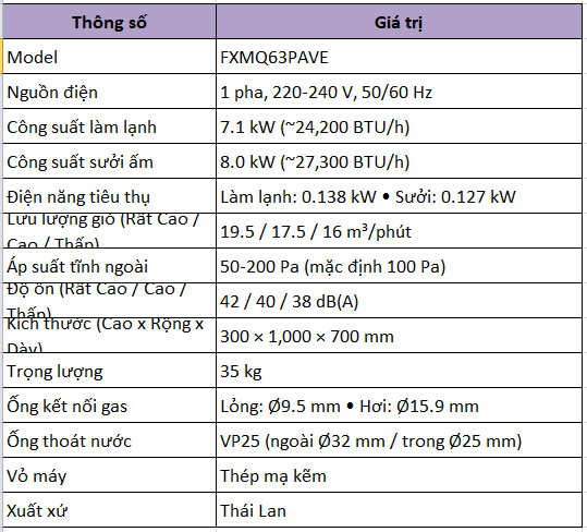 DÀN LẠNH GIẤU TRẦN NỐI ỐNG GIÓ VRV FXSQ63PVE
