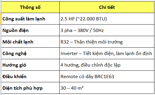 Vận hành êm – Thiết kế gọn: Dàn lạnh mỏng, phù hợp trần thấp; mặt nạ vuông đồng nhất, tăng tính thẩm mỹ khi lắp nhiều máy.