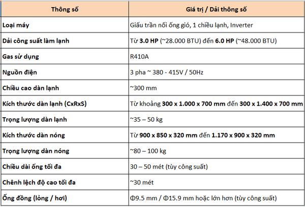 Áp suất tĩnh điều chỉnh được, linh hoạt bố trí ống gió.
