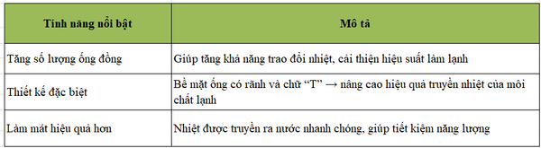 • Hiệu suất làm lạnh cao: Mang lại hiệu quả năng lượng tối ưu cho hệ thống điều hòa.