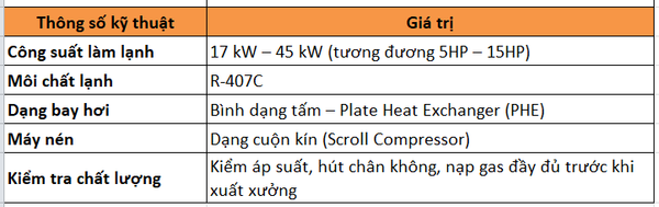 Cung cấp nước lạnh cho dây chuyền sản xuất hoặc hệ thống điều hòa trung tâm (AHU/FCU).