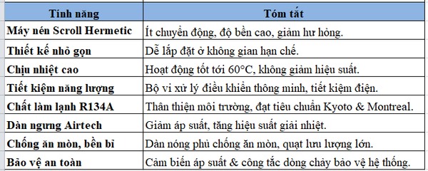 Công suất làm lạnh: Từ 3,2 kW đến 84,6 kW.